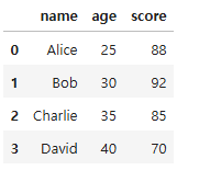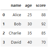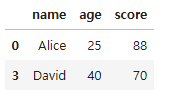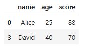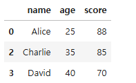df[(df['name'] == 'Alice') | (df['score'] < 80)]
