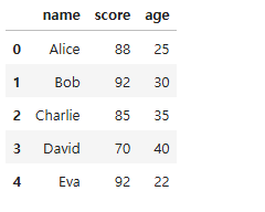 'score': [88, 92, 85, 70, 92],