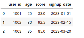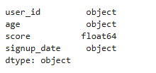 → 숫자인 age도 문자열로 들어왔고, signup_date도 날짜가 아닌 문자열 상태임을 확인