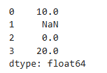 s = pd.Series([10, np.nan, -5, 20])