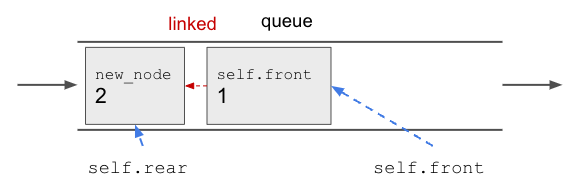 self.rear와 self.front가 new_node를 가리킴으로써 노드가 큐 안으로 들어간다.