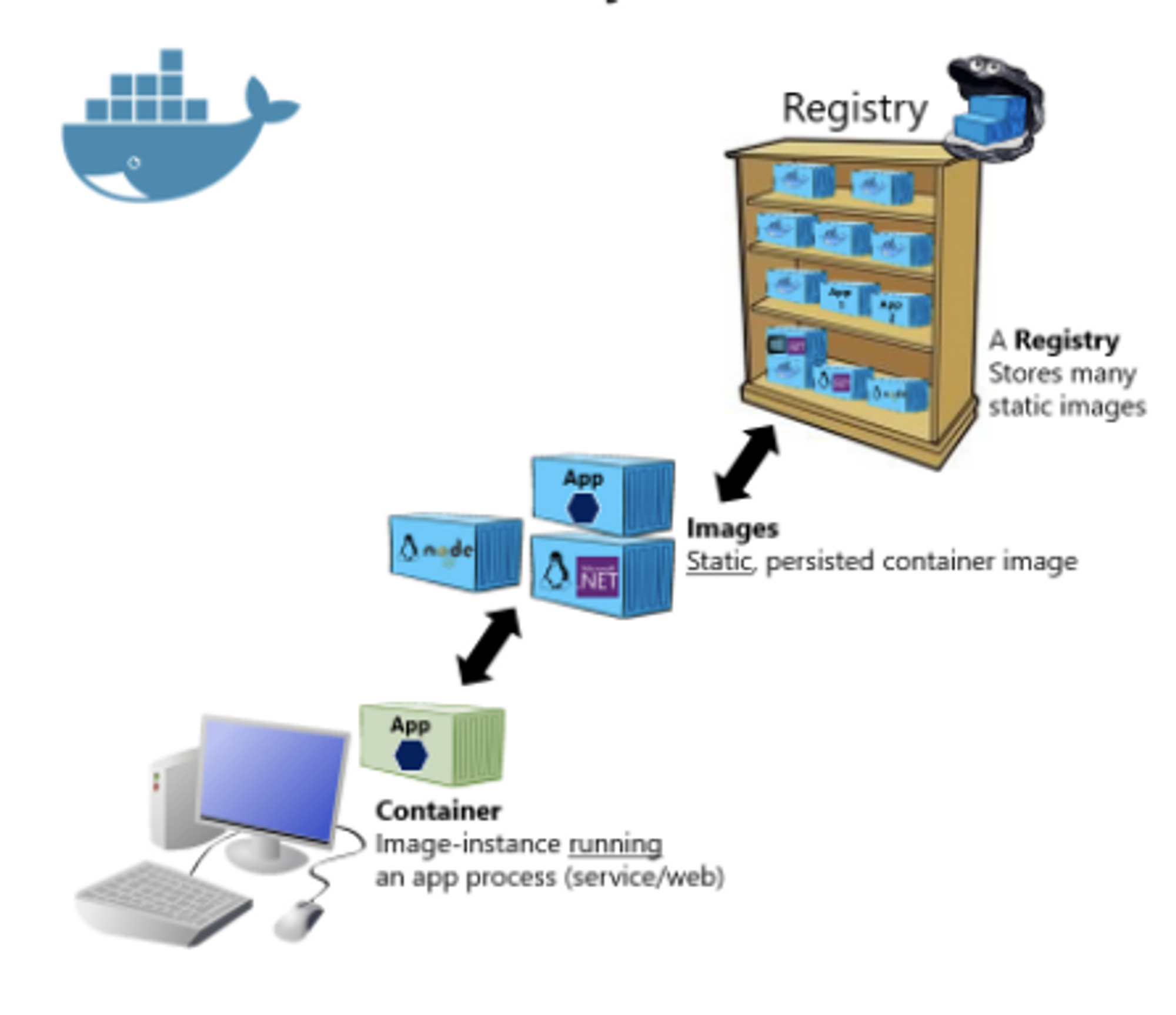 - 특별히 다른 것을 지정하지 않는다면 도커 허브(Docker Hub)를 기본 레지스트리로 설정합니다.