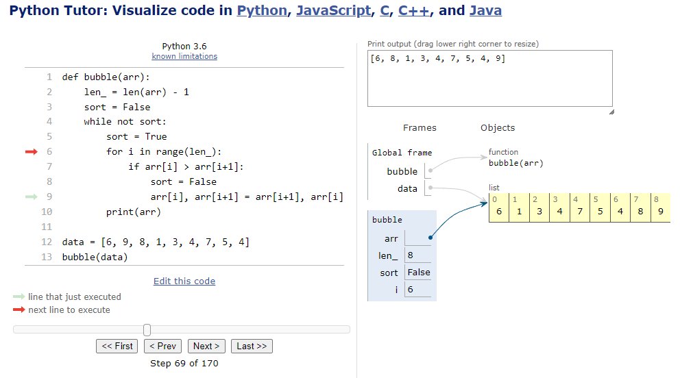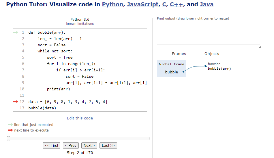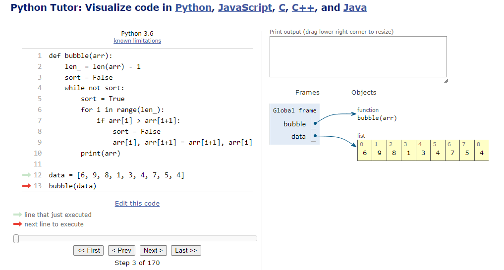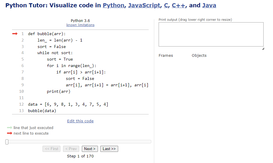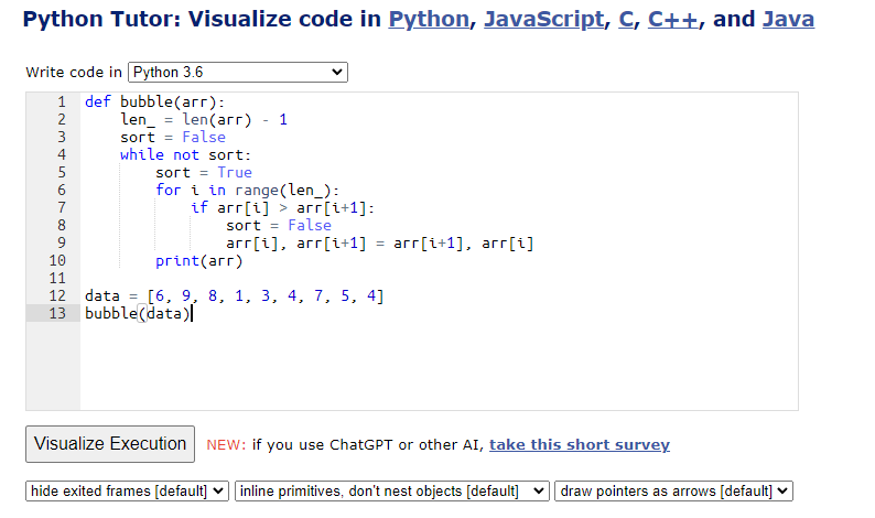 Python Tutor code visualizer: Visualize code in Python, JavaScript, C, C++, and Java