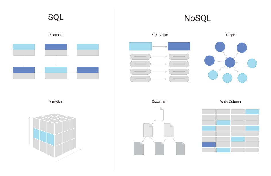 - NoSQL은 위에서 설명된 것처럼, key-value, document, graph, wide-column 형식등의 방식으로 데이터를 저장할 수 있습니다.