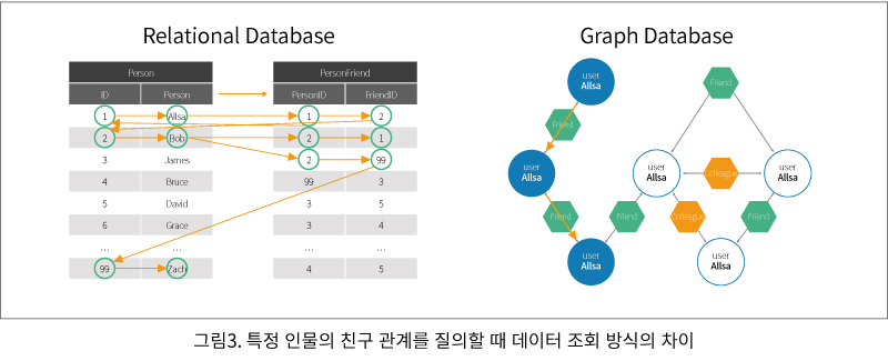 - 기본적으로 관계를 수용하는 데이터베이스 만이 연결을 효율적으로 저장, 처리 및 쿼리 할 수 있습니다.
