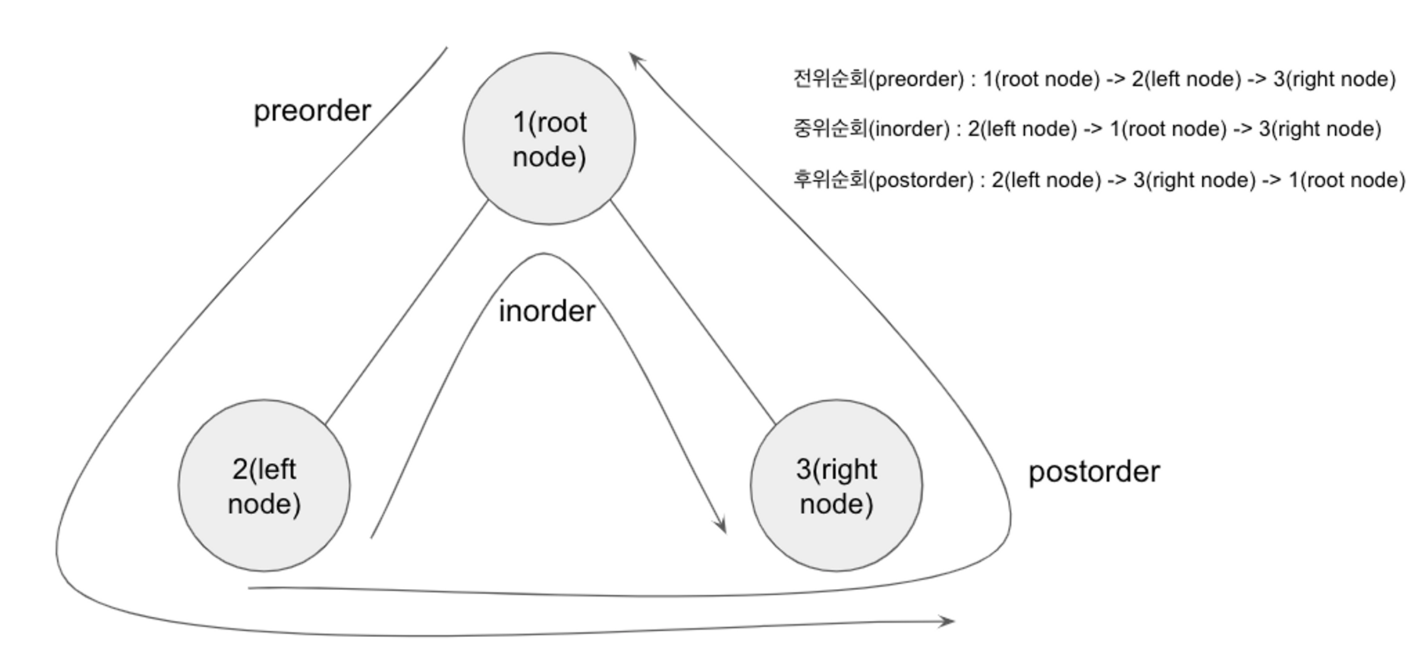 - 트리의 순회는 전위, 중위, 후위순회이다.