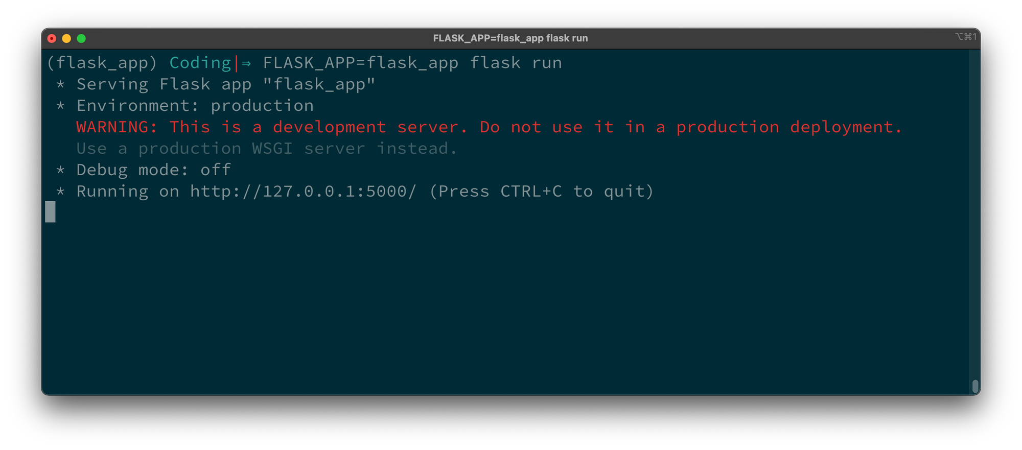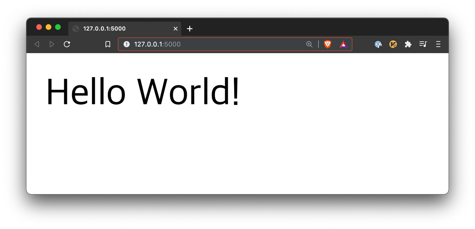 이제 다시 CLI 에서 FLASK_APP=flask_app flask run 으로 실행해서 마찬가지로 127.0.0.1:5000/ 주소에 접속하게 되면 'Hello World!' 라는 문구가 눈의 띌 겁니다.