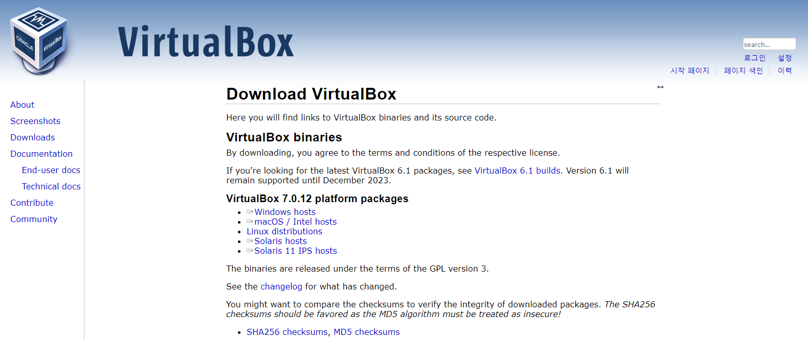 가정 먼저 Oracle VM virtualBox를 다운 받아주시면 됩니다.