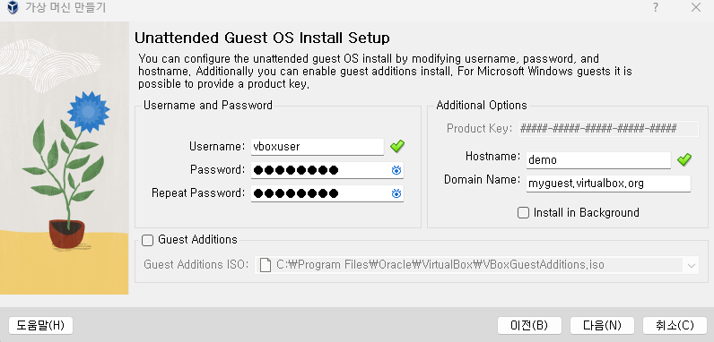 Username과 Password는 우리가 설치할 컴퓨터 Login 정보이므로 잃어버리지 않게 메모장에 적어두시는걸 추천해드립니다.