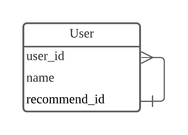 정리하자면 각 유저당 한 명만 추천할 수 있지만 추천 받은 사람은 여러 명에서부터 추천을 받게 되는 셈이죠.