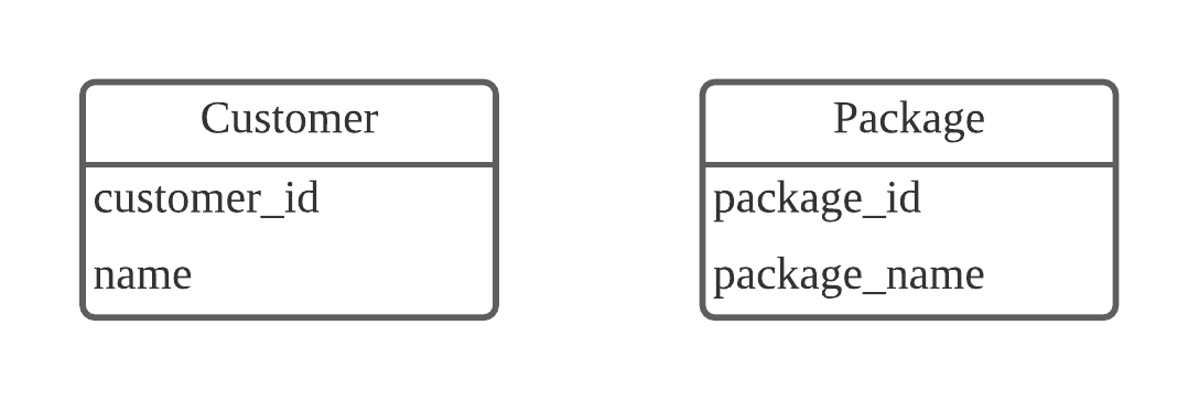 보시면 'customer_package' 테이블의 역할은 그저 customer_id 와 package_id 를 묶어주는 역할을 합니다. 이 테이블을 통해서 어떤 고객이 어떤 여행 상품들을 가지고 있는지 혹은 어떤 여행 상품이 어떤 고객들을 가지고 있는지 등을 확인할 수 있습니다. 중요한 것은 이를 따로 테이블로 생성했을 때에도 동일하게 기본키가 있어야 하는 겁니다.