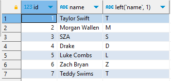 - "ABC"에서 왼쪽에서 1번째 문자까지 반환