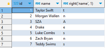 - "ABC"에서 오른쪽에서 1번째 문자까지 반환