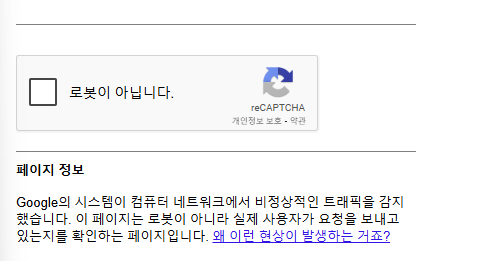 해당 코드를 돌려보시면 위에 이미지처럼 "로봇이 아닙니다." 라는 화면이 나옵니다.