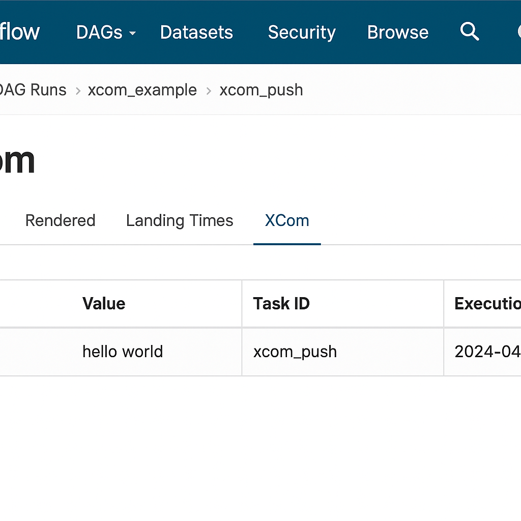 - 데이터 크기 제한 : XCom 값은 기본적으로 Airflow의 메타데이터 DB에 저장됩니다.